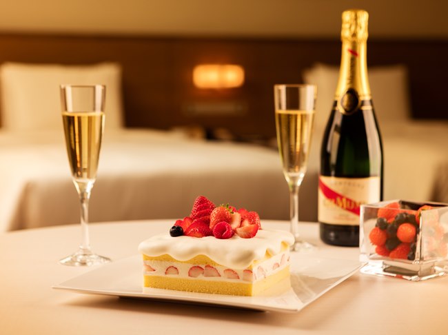 お部屋でのお祝いのために、アニヴァーサリーケーキやシャンパンをご用意いたします。